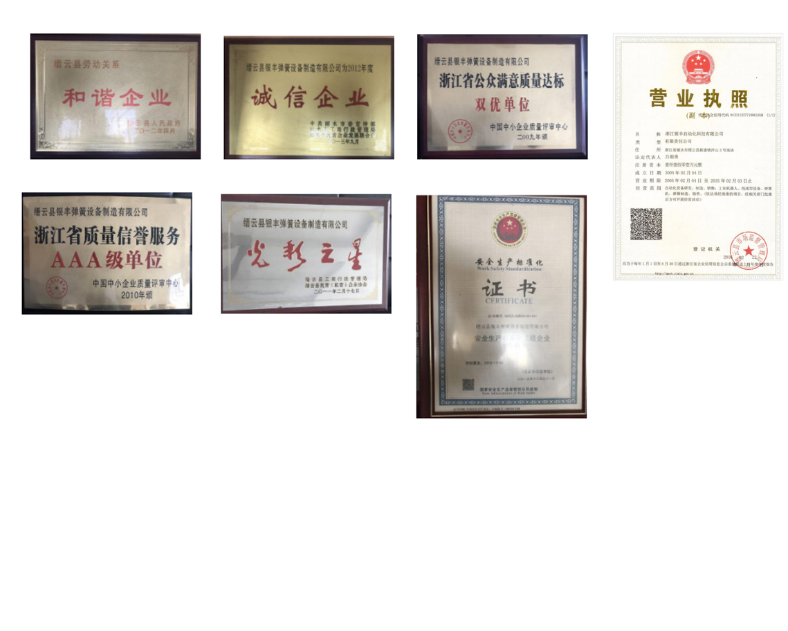 浙江银丰自动化科技有限公司是浙江省内一家伺服CNC线材成型折弯设备生产公司,一家能生产0.1-16mm线径成型设备,汽车座椅骨架3D成型机3-16mm设备厂商,公司自动化设备所以系统和伺服控制均来自日本三洋,安川,电脑系统均引进台湾的成熟技术,设备具有送线精密度高,成型动作稳定,准确,外观新颖等特点,现有CNC-82系列,CNC-83系列,CNC-85系列,CNC-86系列,CNC-10系列,CNC-12系列,CNC-L系列,3D-CNC,2D-CNC系列深受广大客户青睐,连续多年销售量位居行业前茅,设备服务于全球15个国家2000多家厂商,时至今天,我们取得了骄人的成绩,我们的专利技术在行业内入选〈世界优秀专利技术精选〉,系列产品在行业内入选“中国名优品牌”,公司在全国实行所有产品全免费1年质保。
